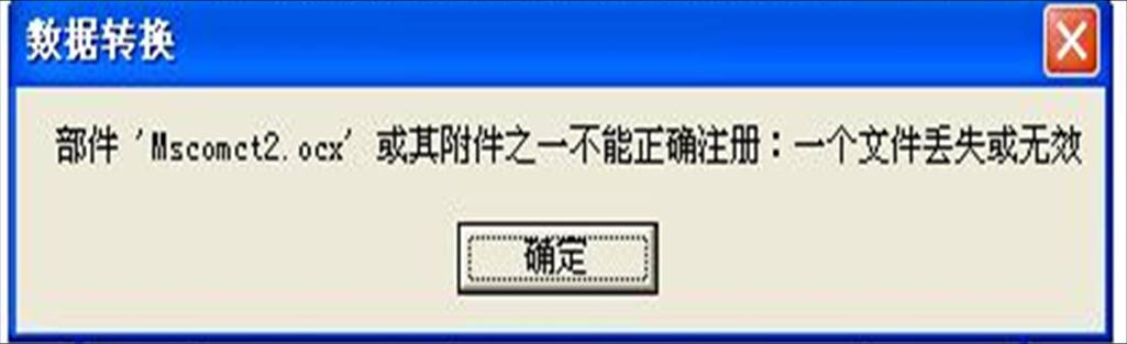 运行湖北粮食专用报表软件【数据转换工具】时提示:部件‘Mscomct2.com’或其附件之一不能正确注册:一个文件丢失或无效
