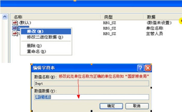 步骤3:右键点击查找到的要修改的"单位名称"或"主管人员",点击[修改],输入修改的内容,点击[确定].